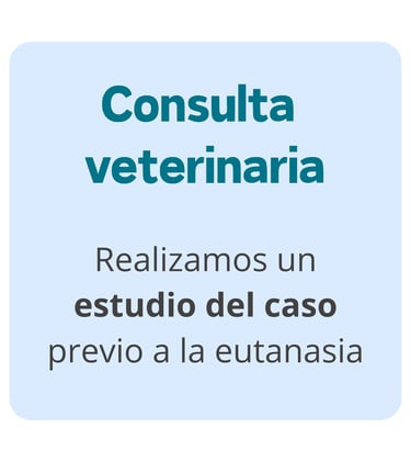 Nos encargamos de todo para hacerte más llevadero este díficil momento. Con nuestro servicio integral no tendrás que preocuparte de nada. El veterinario/a te atenderá previamente por teléfono para resolverte cualquier duda sobre el procedimiento o las tarifas para tu caso en concreto. Durante la visita, hacemos una exploración completa para asegurarnos de que la eutanasia está indicada. Nos cercioramos de que tu mascota está bajo una sedación profunda antes de practicar la eutanasia. Además, nos encargamos de gestionar la baja del microchip y la recogida e incineración, si así lo deseas.